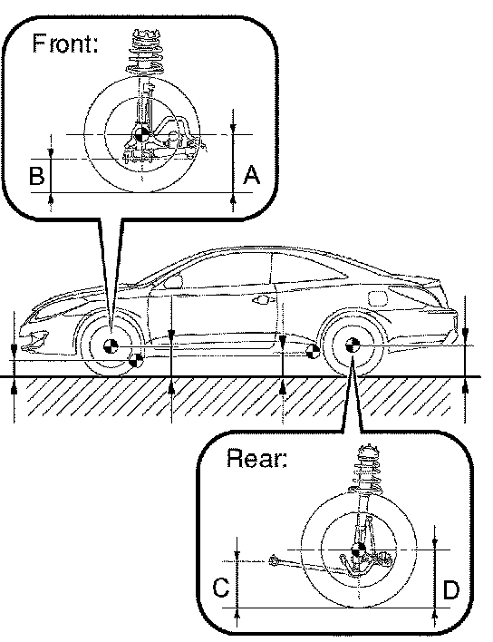 HINT: Bounce the vehicle at the corners up and down to stabilize the suspension and inspect the vehicle height.