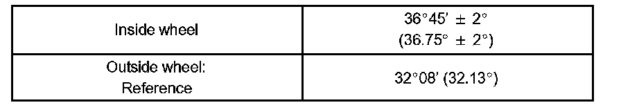 If the right and left inside wheel angles differ from the specified range, check and adjust the right and left rack end lengths.