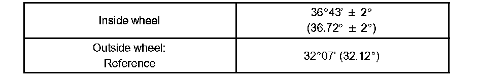The body and suspension may be damaged if the camber is not correctly adjusted according to the above table.