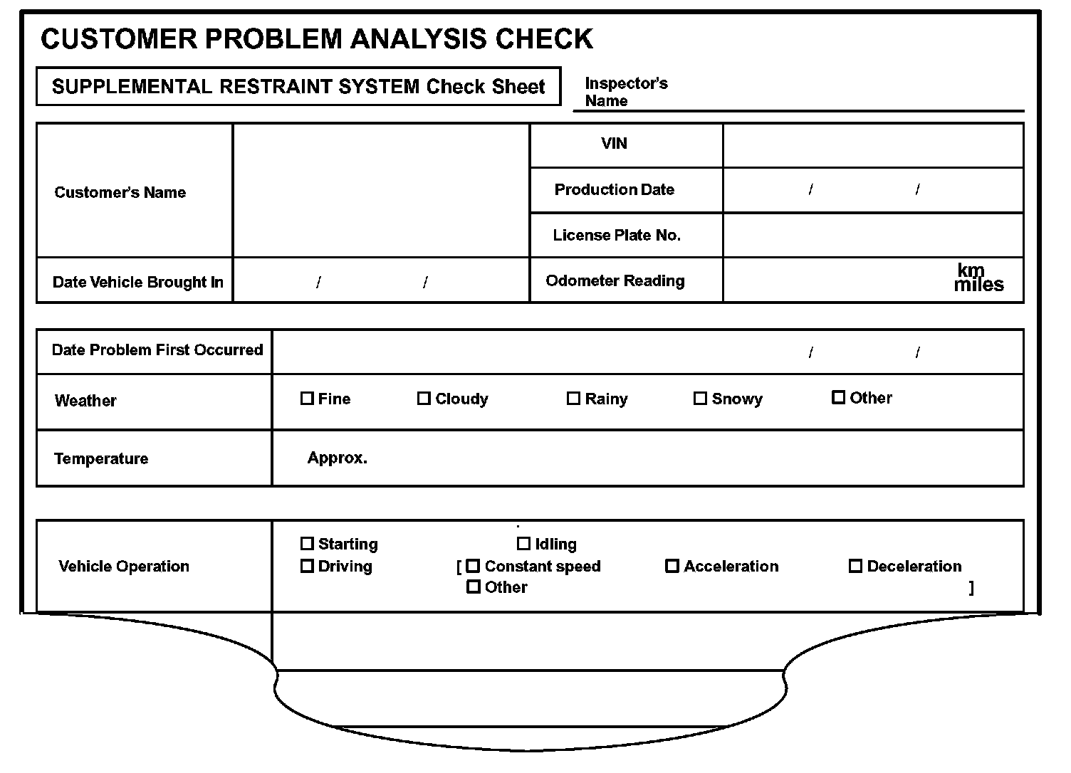 (Sample) Supplemental Restraint System check sheet