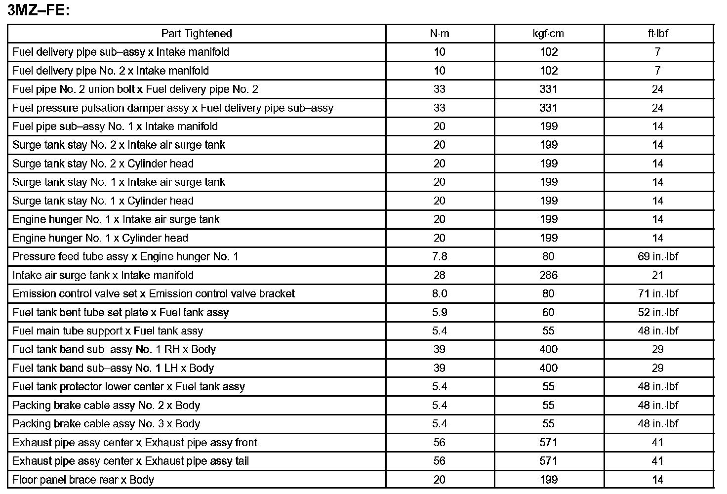 Fuel - Torque Specification: