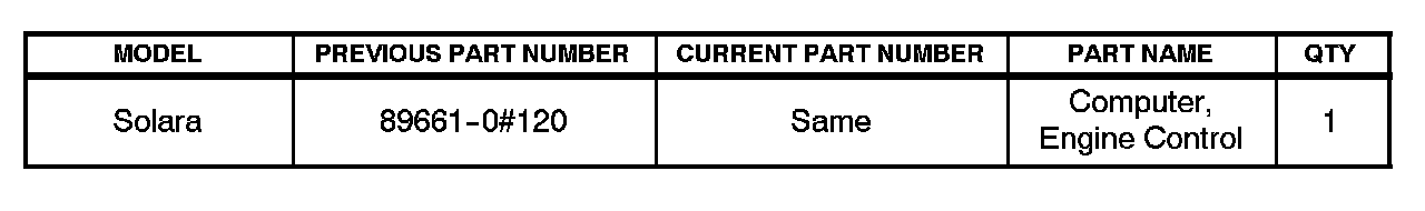 ^ 2004 model year Solara vehicles equipped with 3MZ-FE engines produced BEFORE the Production Change Effective VIN shown below.