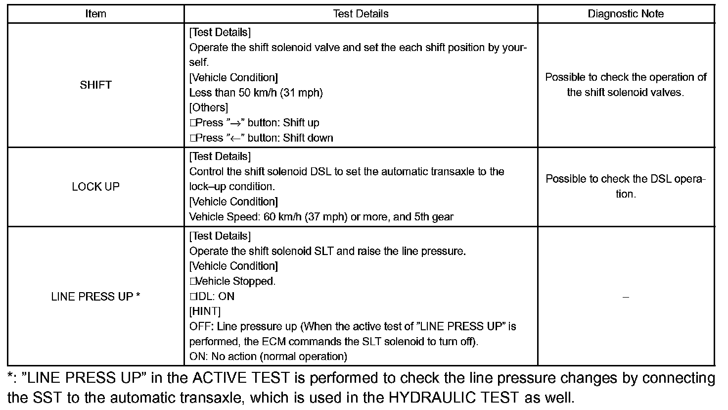 HINT: The pressure values in ACTIVE TEST and HYDRAULIC TEST are different from each other.
