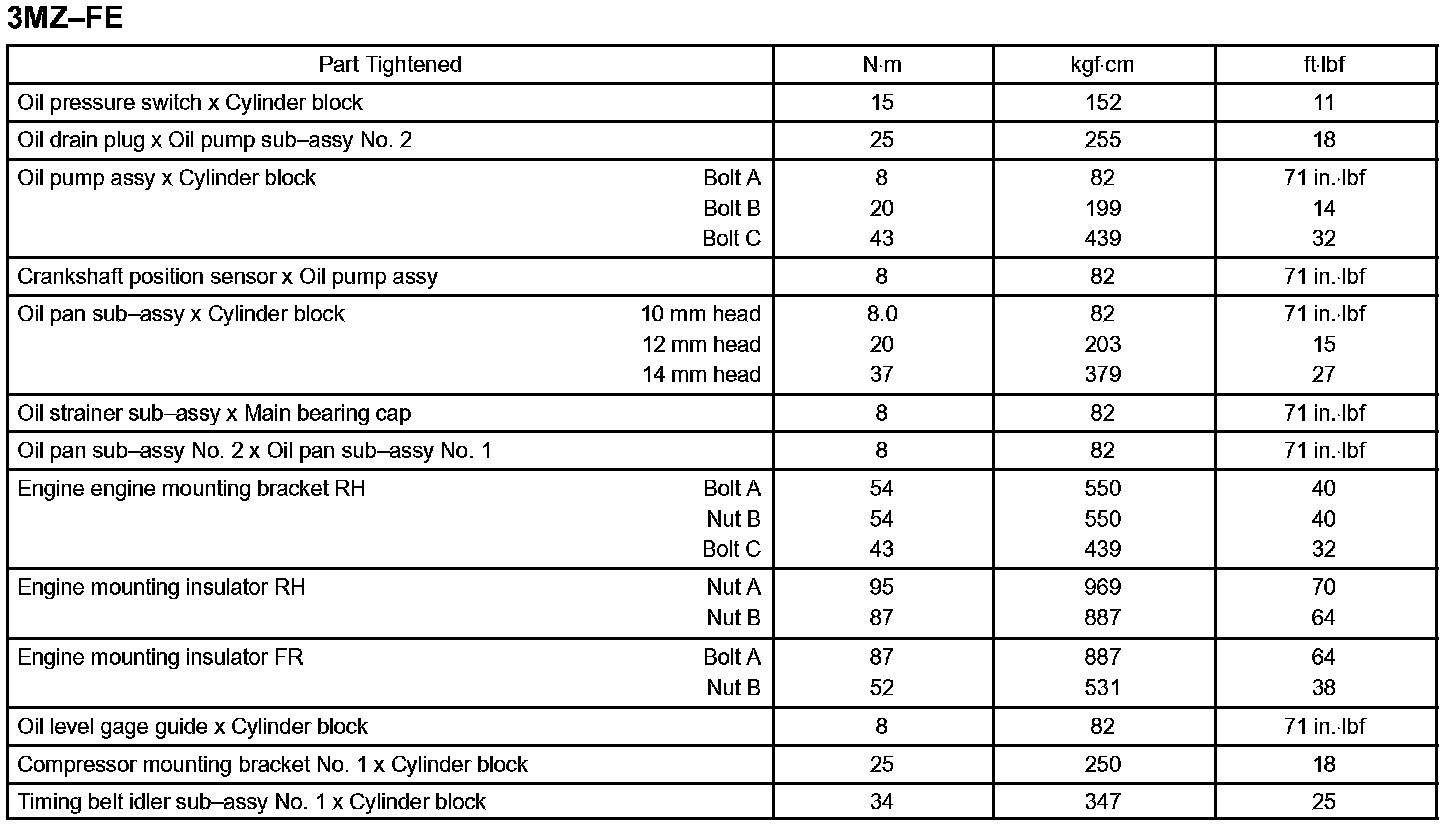 Lubrication - Torque Specification Part 2: