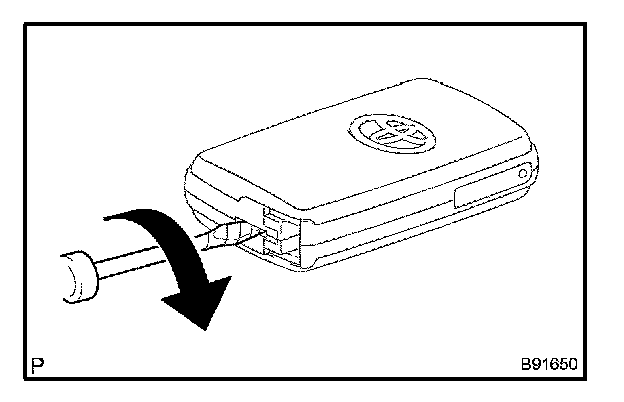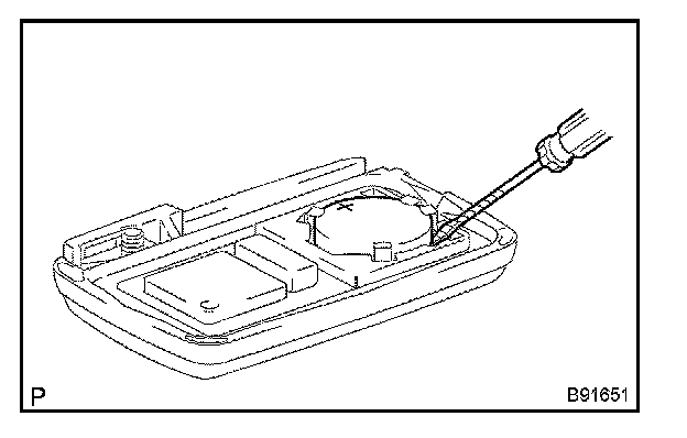 c. Using a screwdriver, remove the transmitter's battery from the key, as shown in the illustration.