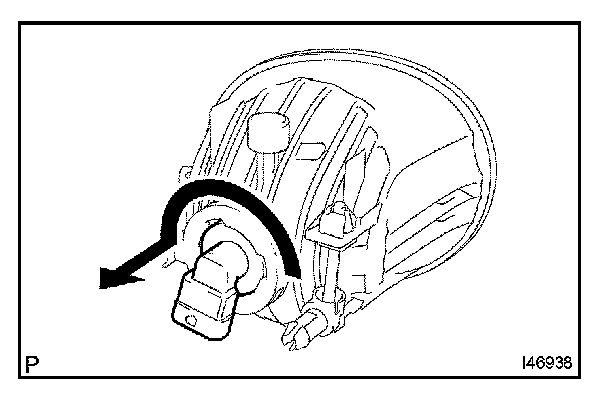 a. Turn the fog light bulb in the direction indicated by the arrow and remove it.
