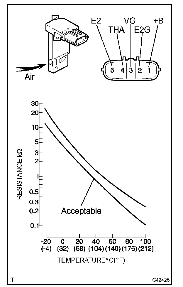 b. Measure the resistance between terminals 4 (THA) and 5 (E2).