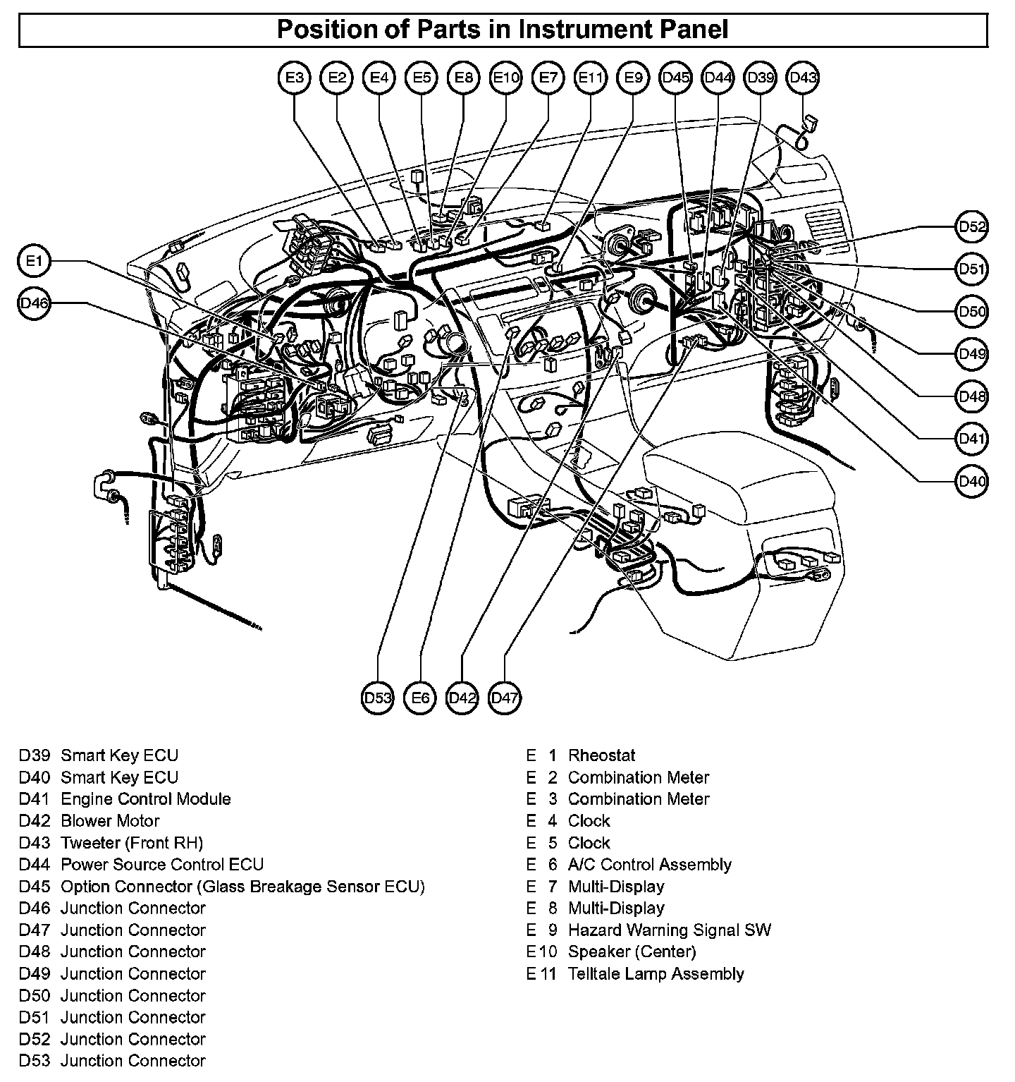 Position of Parts In Instrument Panel: