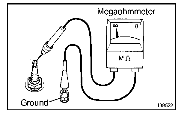 Correct insulation resistance: 10 M Ohms or higher If the resistance is less than the specified value, proceed to step (e).
