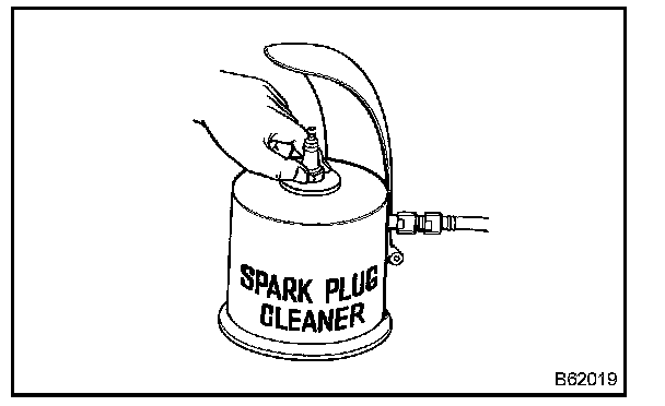 HINT: Only use the spark plug cleaner when the electrode is free of oil. If the electrode has traces of oil, use gasoline to clean off the oil before using the spark plug cleaner.