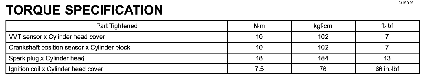 Ignition - Torque Specification: