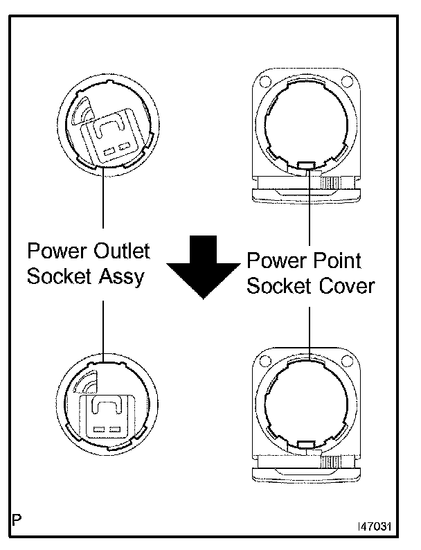 c. Turn in the direction indicated by the arrow and push the power outlet socket assembly.
