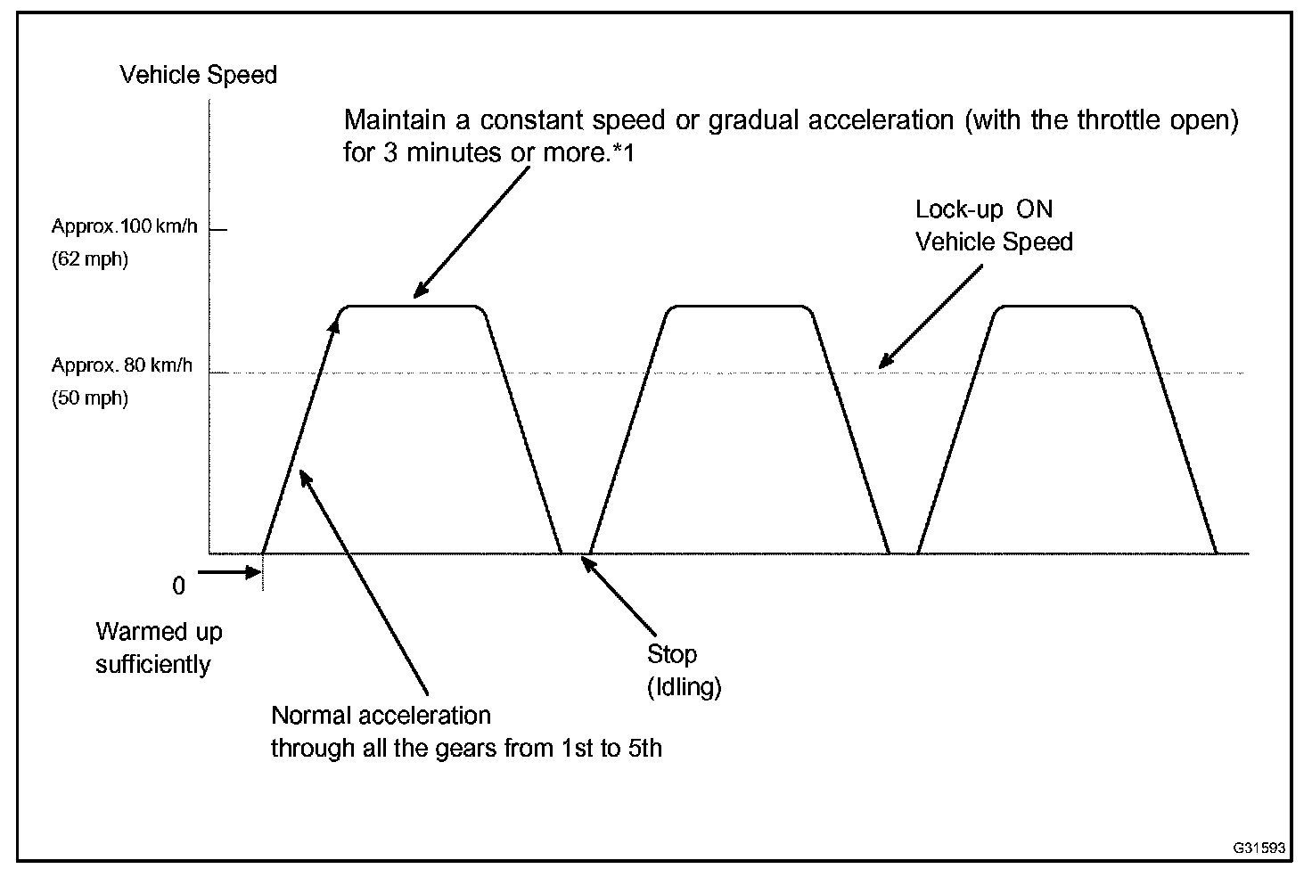 HINT: *1:Drive at such a speed in the uppermost gear, to engage lock-up. The vehicle can be driven at a speed lower than that in the diagram under the lock-up condition.
