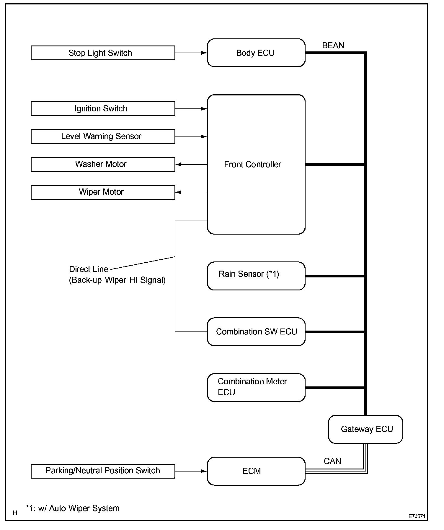 a. When the front wiper system receives a wiper operation signal from the combination switch ECU, the front controller operates the wiper motor.