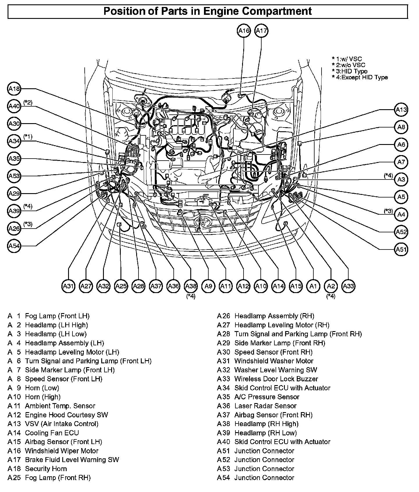 Position of Parts In Engine Compartment: