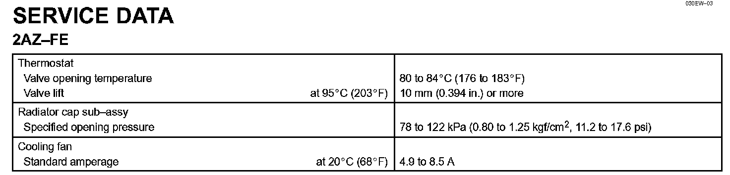 Cooling - Service Data:
