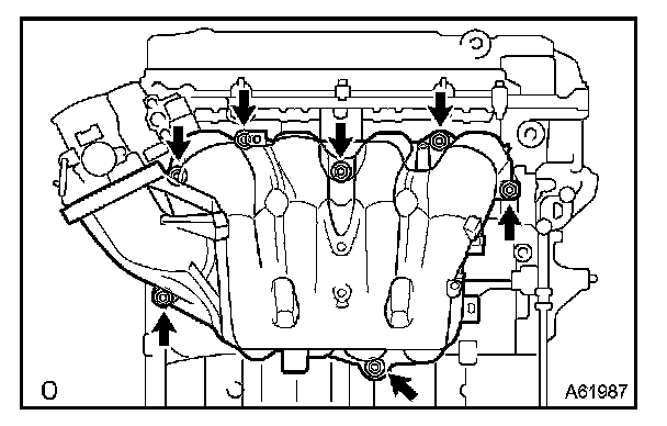 a. Install a new gasket and the intake manifold with the 5 bolts and 2 nuts.