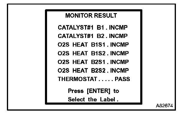 CHECKING MONITOR STATUSHINT: "MONITOR RESULT" indicates normal or malfunction of each component and system when a judgment was made.