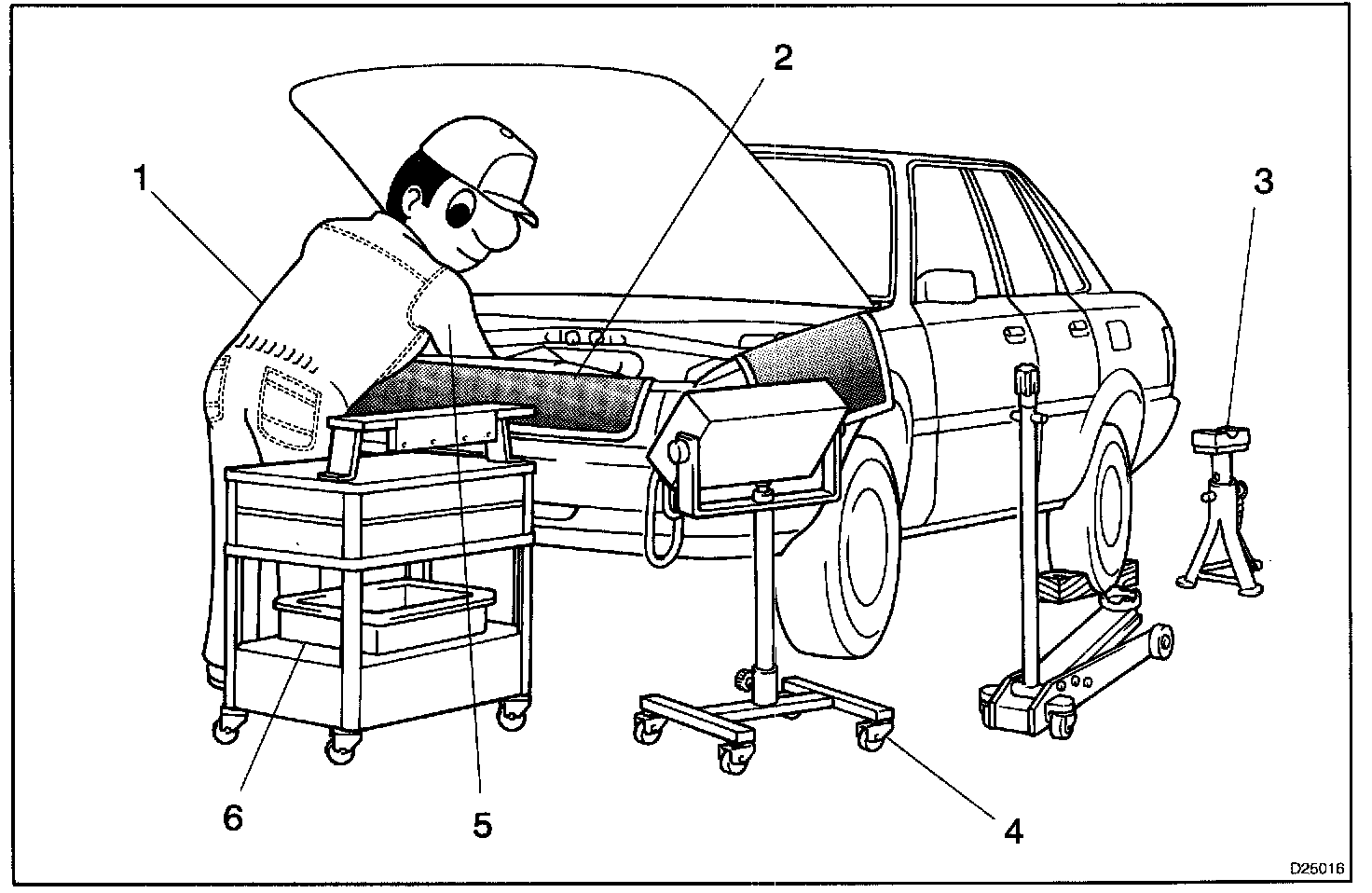 1. Care must be taken when jacking up and supporting the vehicle. Be sure to lift and support the vehicle at the proper locations.