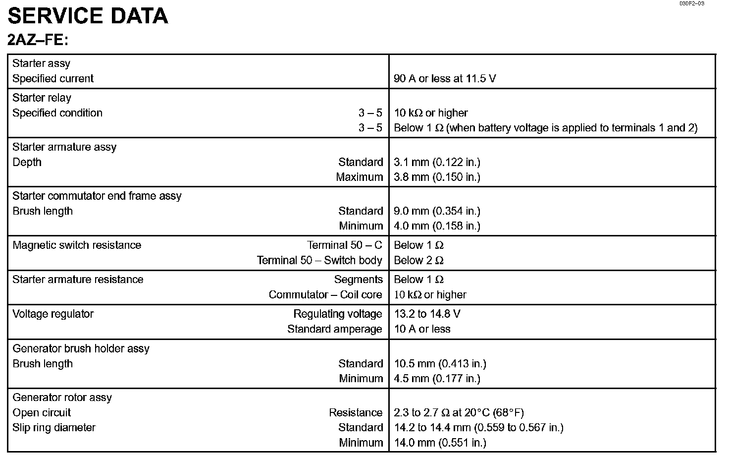 Starting & Charging - Service Data: