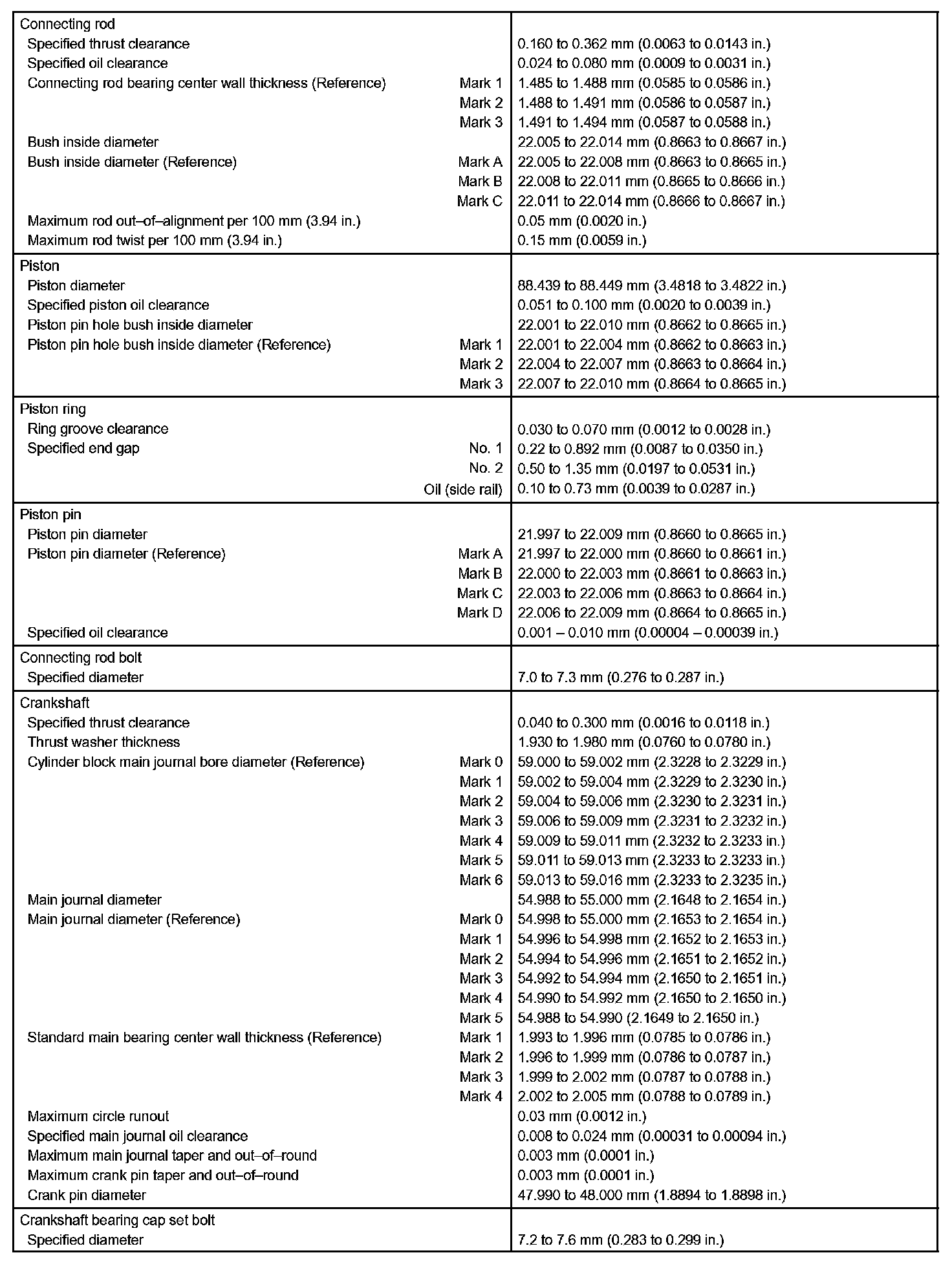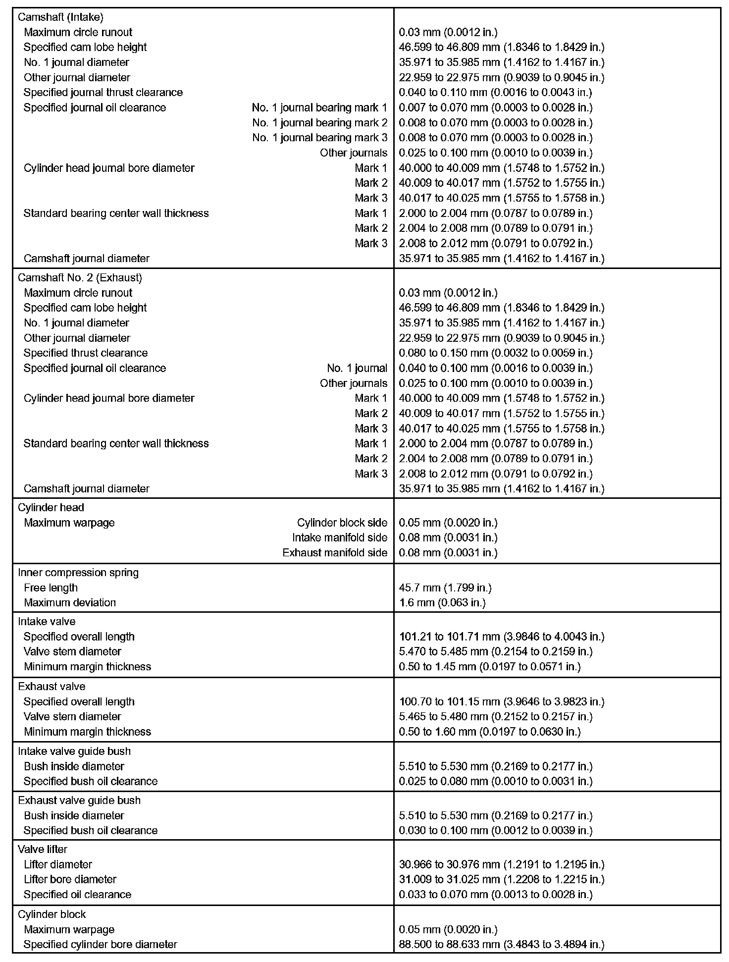 Engine Mechanical - Service Data Part 2: