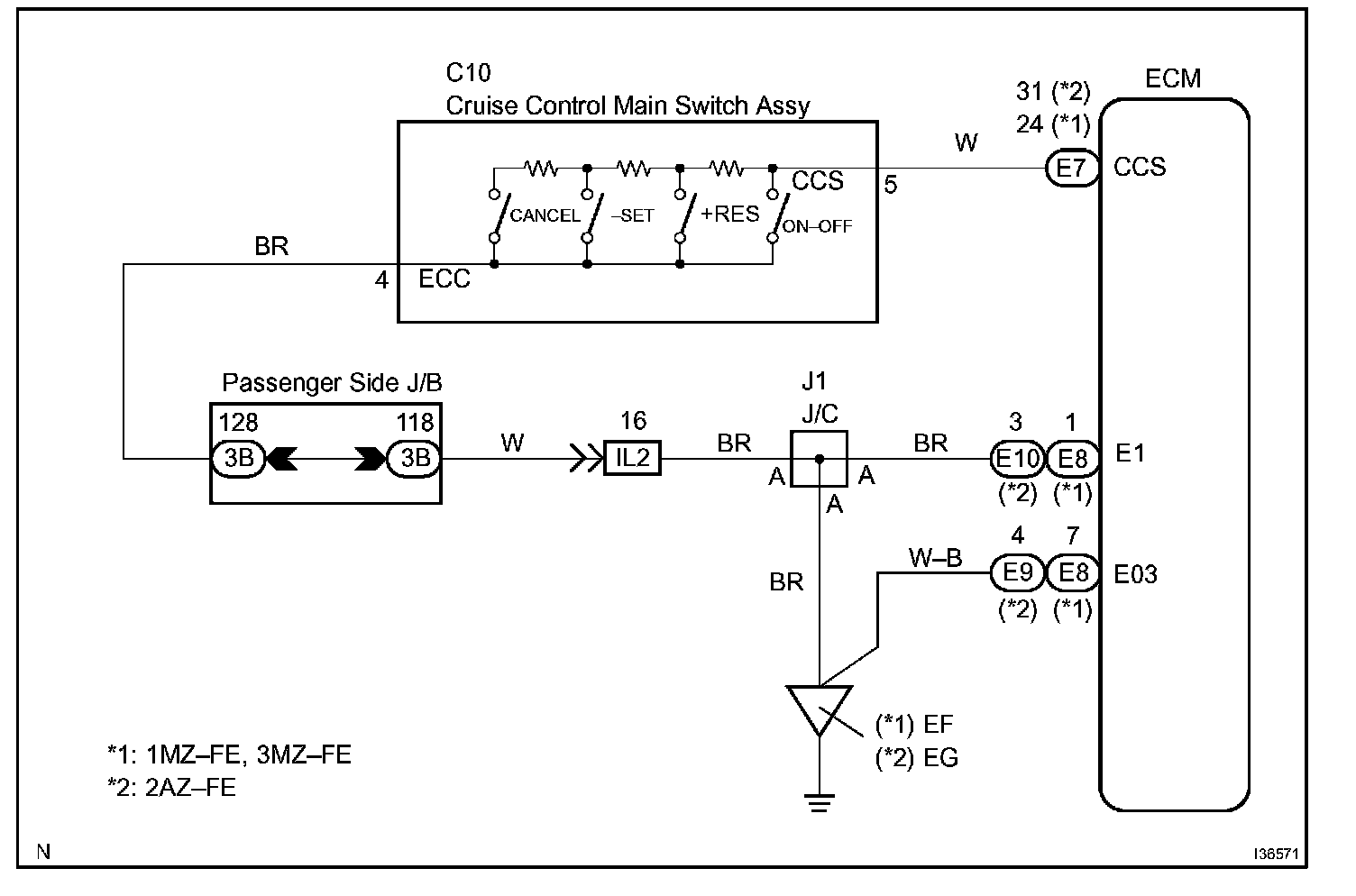 This circuit carries the SET/COAST, RESUME/ACCEL and CANCEL voltage signals to the ECM.