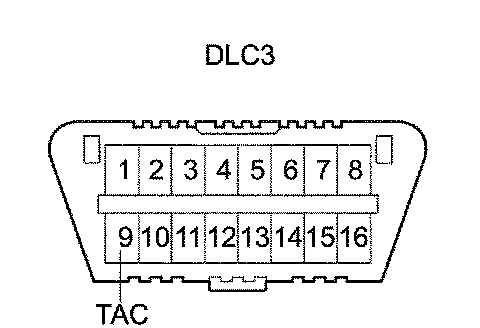 1. Using SST, connect tachometer test probe to terminal 9 (TAC) of the DLC3.