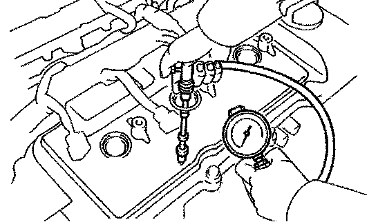 NOTICE: Always use a fully charged battery to obtain engine speed of 250 rpm or more. Check other cylinder's compression pressure in the same way. This measurement must be done as quickly as possible.