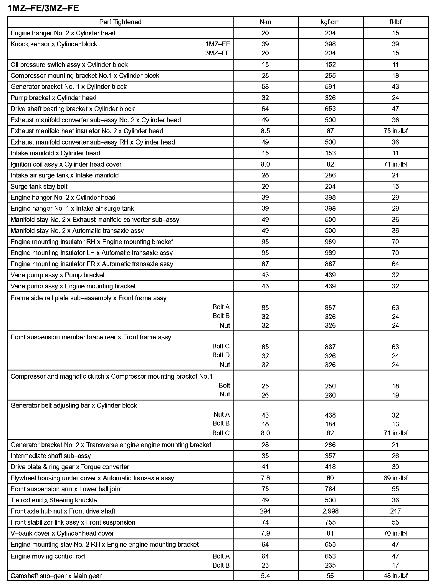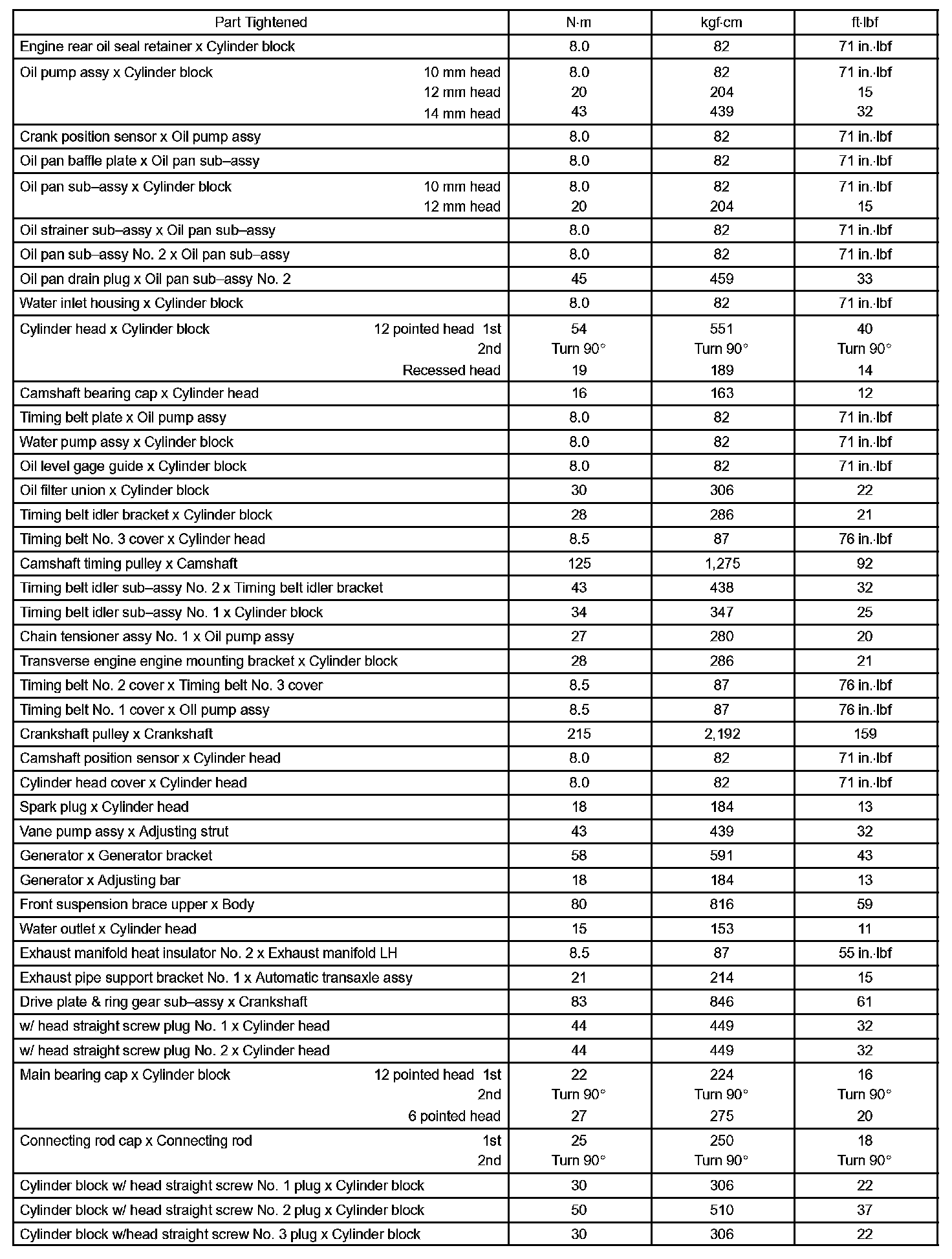 Engine Mechanical - Torque Specification Part 1:
