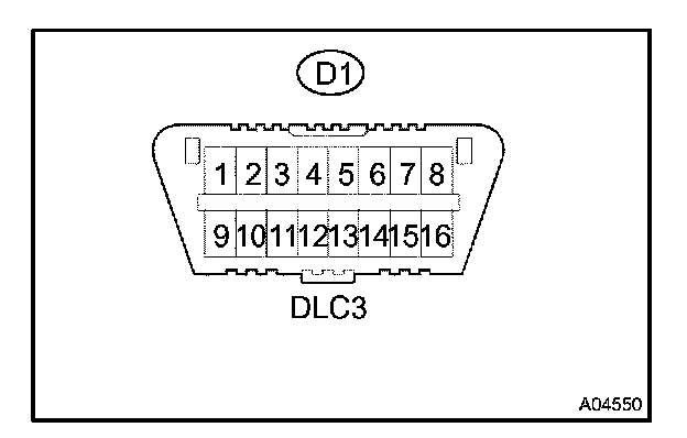 Inspect the DLC3The vehicle's ECM uses ISO 9141-2 for communication. The terminal arrangement of the DLC3 complies with SAE J1962 and matches the ISO 9141-2 format.