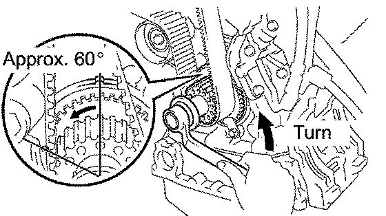 1. Turn the crankshaft counterclockwise by approximately 60°.