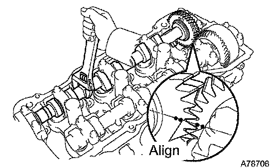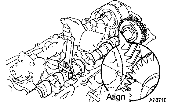 a. Align the camshaft drive and driven gear's timing marks (2 dot marks each) by turning the camshaft with a wrench.