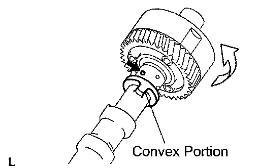 e. Under the condition above, check that the VVT-i can be turned by hand to the advanced angle side, the direction of the white arrow in the illustration.