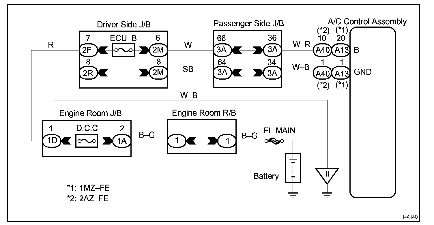 This is the back-up power source for the air conditioner amplifier. Power is supplied even when the ignition switch is off and is used for diagnostic trouble code memory, etc.