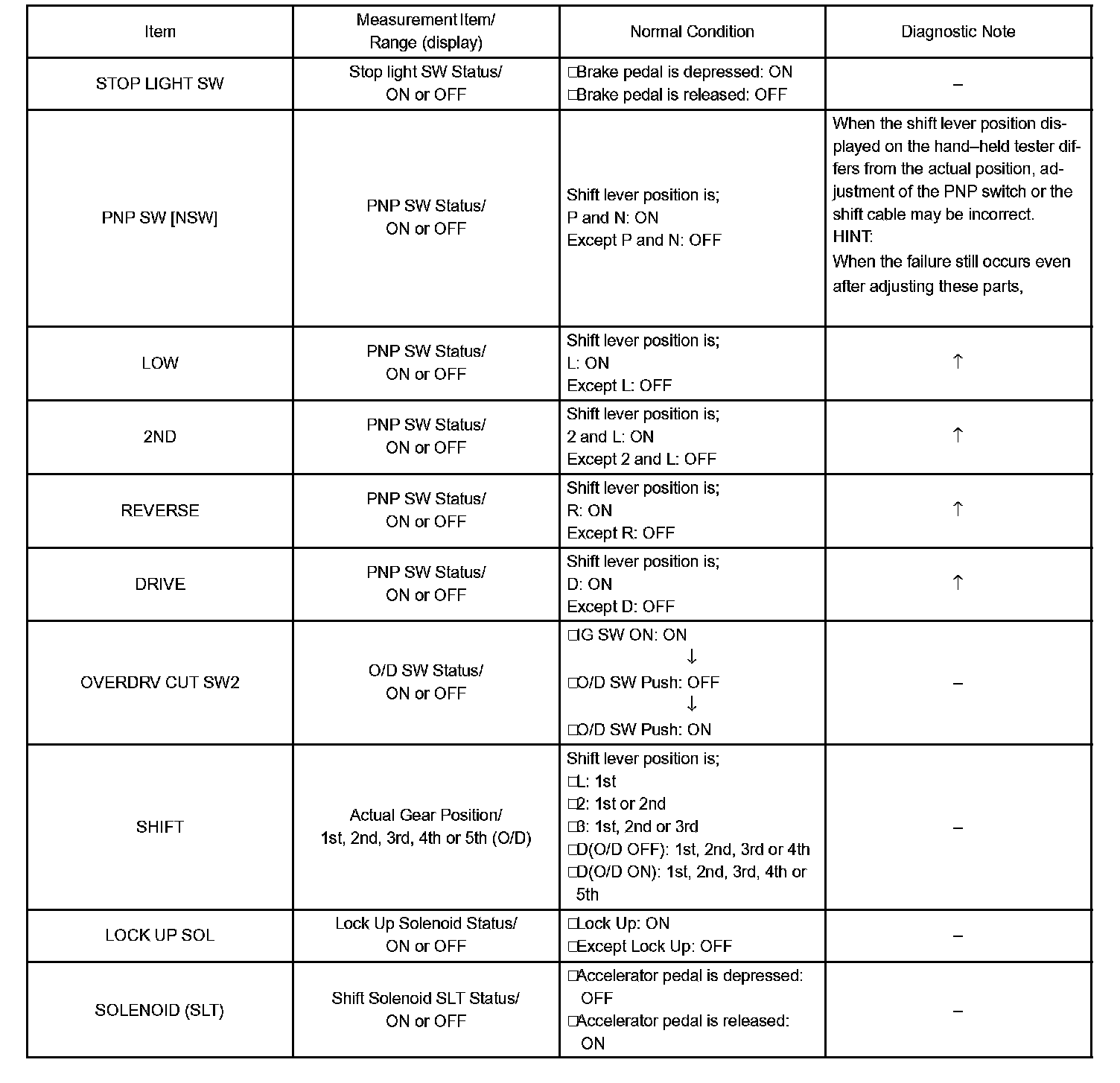 DATA LISTHINT: According to the DATA LIST displayed by the OBD II scan tool or hand-held tester, you can read the value of the switch, sensor, actuator and so on without parts removal. Reading the DATA LIST as the first step of troubleshooting is one method to shorten labor time.