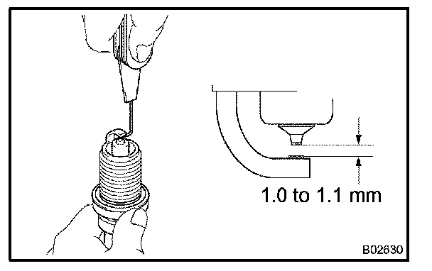 Correct electrode gap for new spark plug: 1.0 to 1.1 mm (0.039 to 0.043 in.)