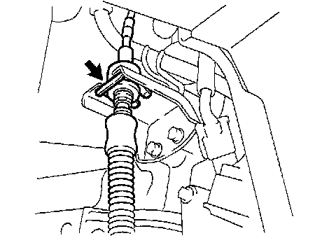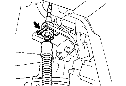 f. Disconnect the floor shift cable from the transmission floor shift assembly.