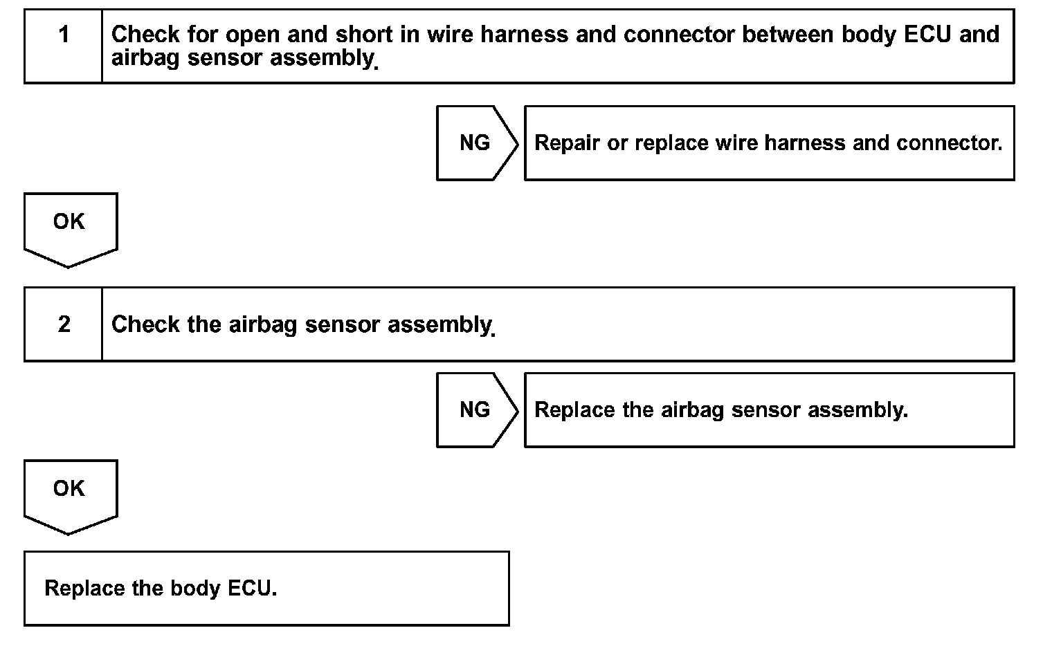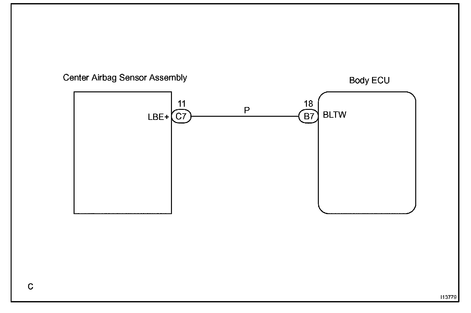 Signals received at the body ECU, such as the passenger seat occupant detection sensor signal, are transmitted to the airbag sensor assembly.