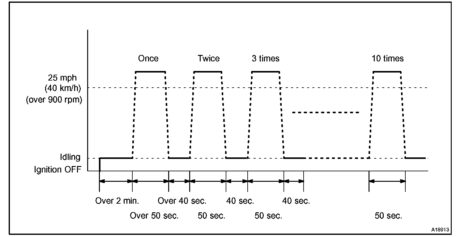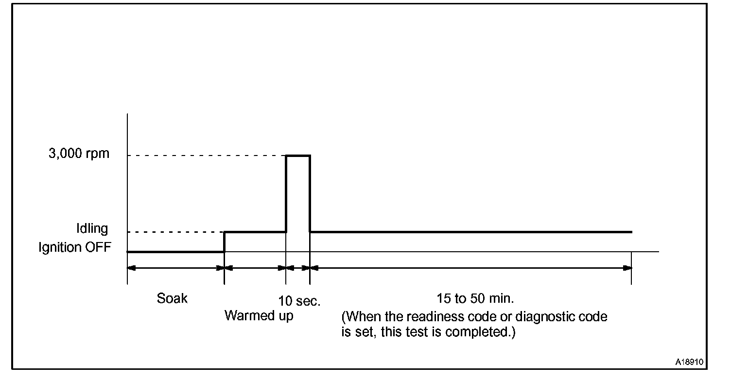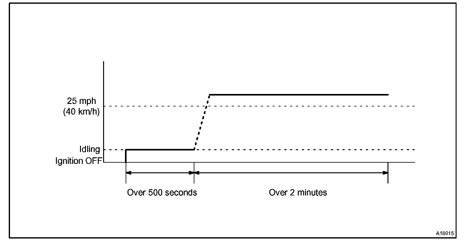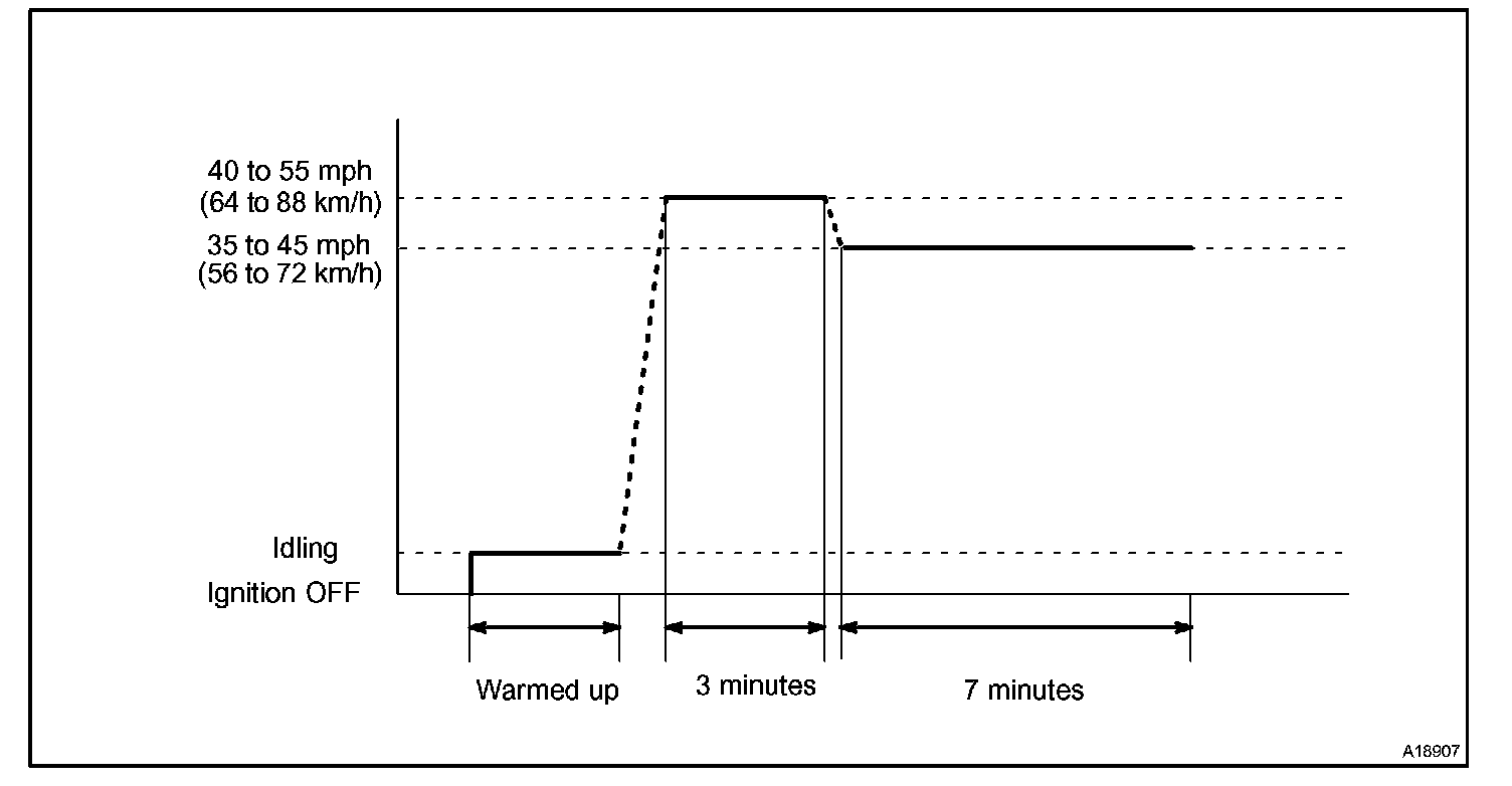 If IAT is less than 10 °C (50 °F) when engine was started, drive the vehicle at 40 to 55 mph (64 to 88 km/h) for additional 4 minutes.