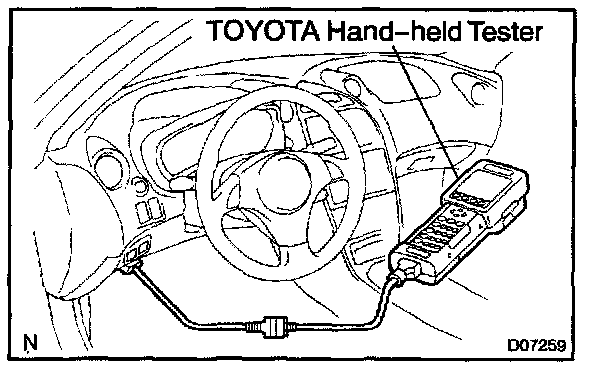 1. Connect a TOYOTA hand-held tester to the DLC3.
