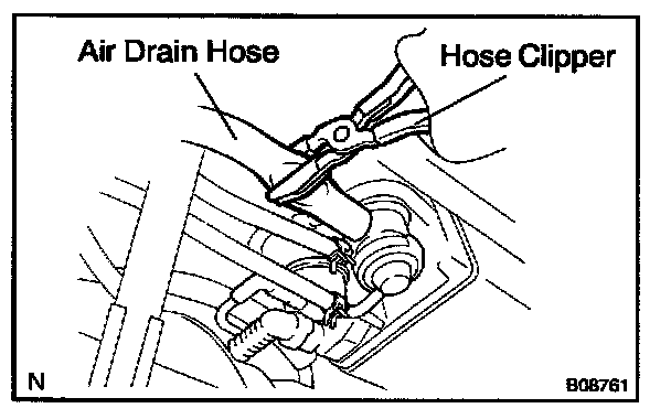 1. Close off the air drain hose at the marked position of the canister with a hose clipper or similar instrument.