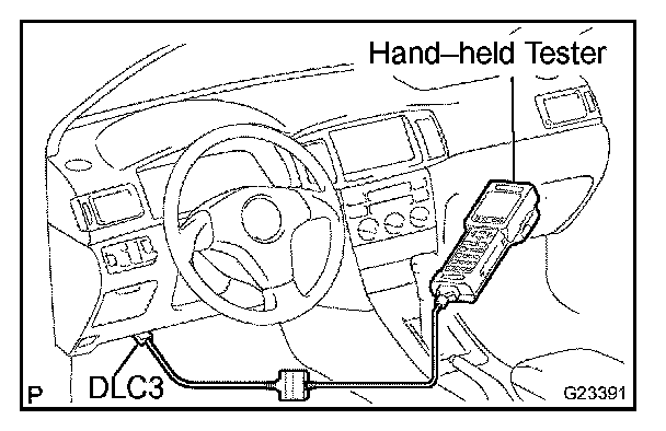 HINT: Connect the cable of the hand-held tester to the DLC3, turn the ignition switch ON and attempt to use the tester. If the screen displays the message UNABLE TO CONNECT TO VEHICLE, there is a problem either with the vehicle or with the tester.