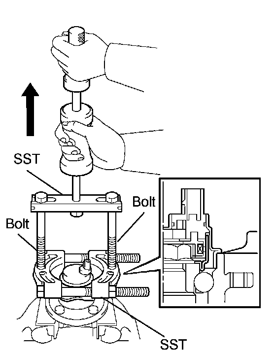 b. Using a pin punch and hammer, drive out the 2 pins and remove the 2 attachments from SST