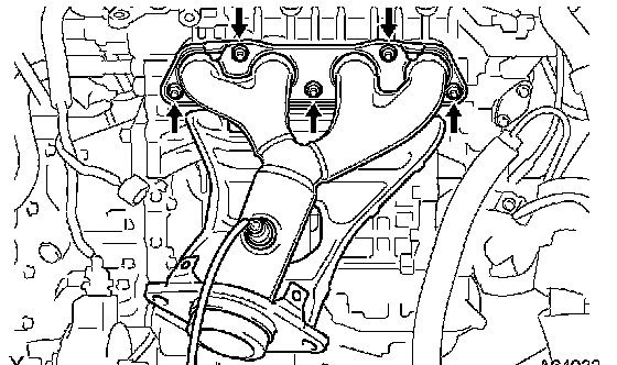 Install a new gasket and the exhaust manifold with the 5 nuts.