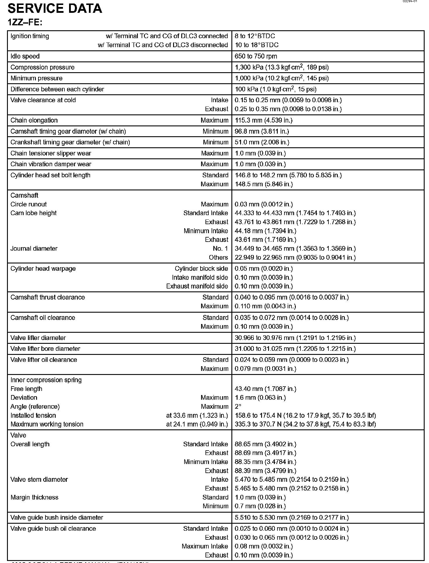 Engine Mechanical - Service Data Part 1: