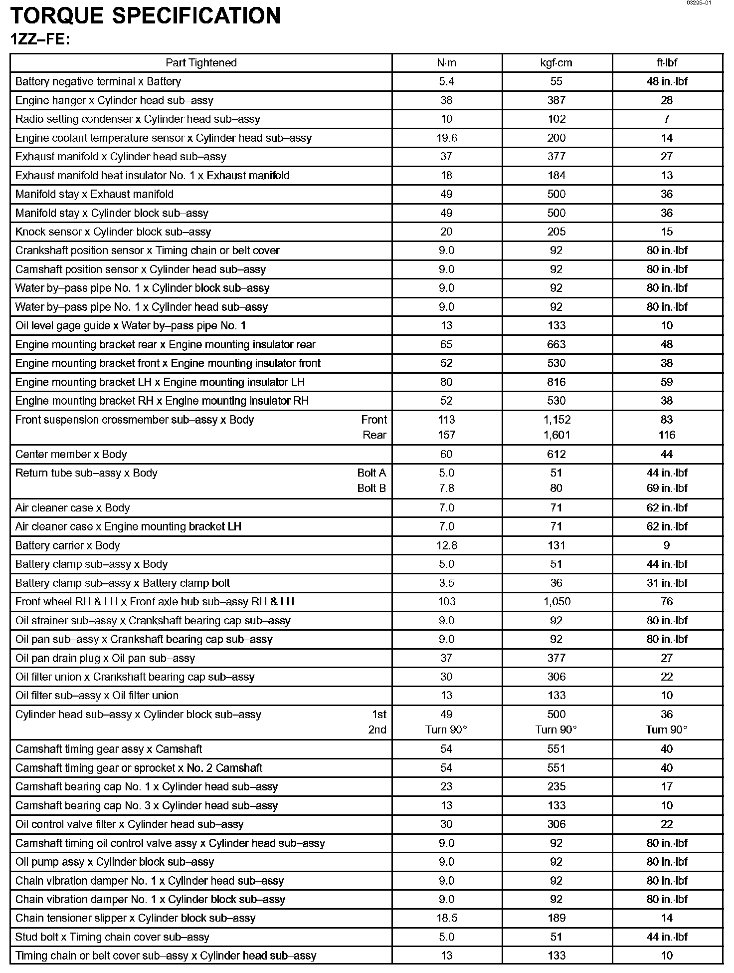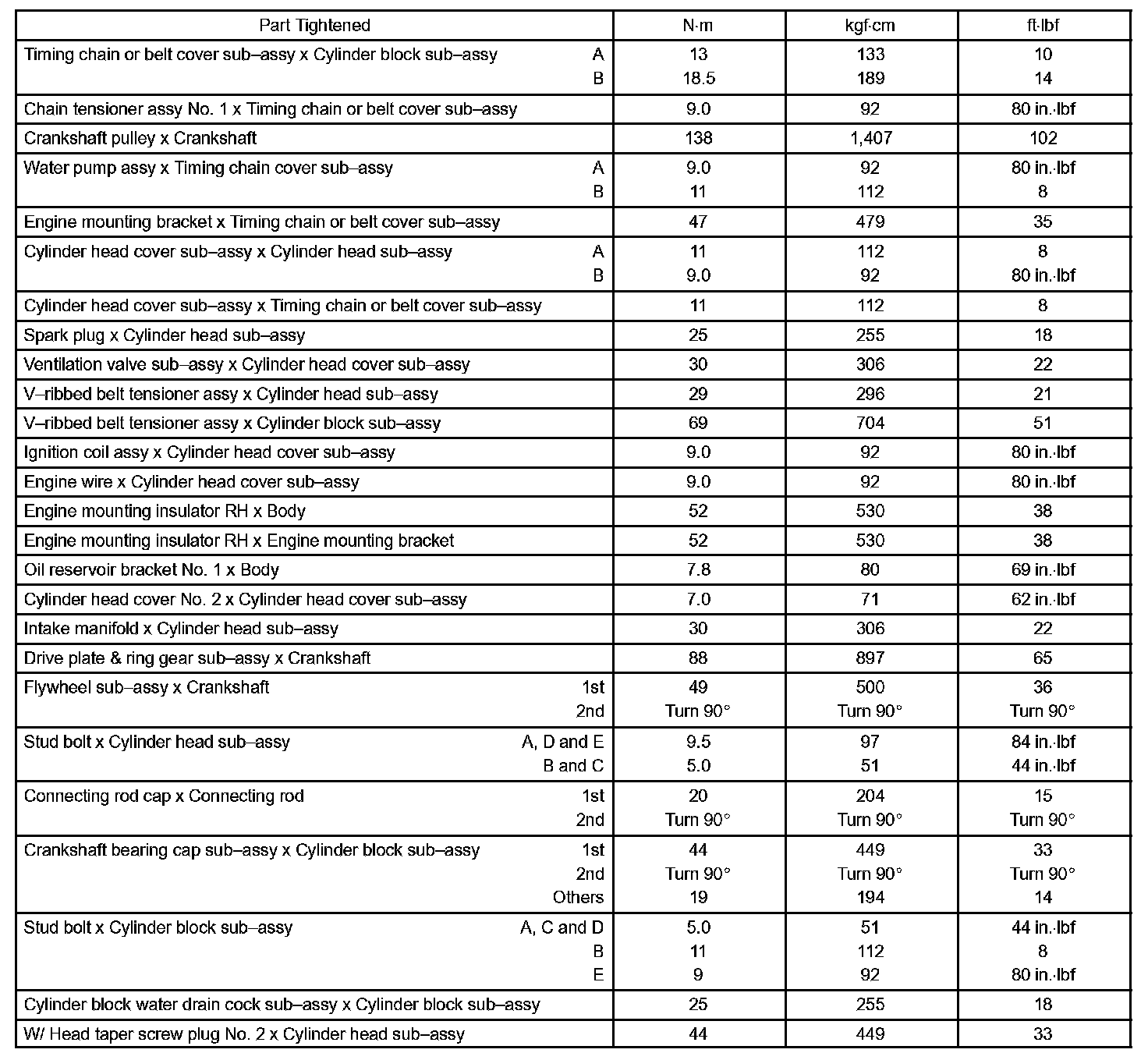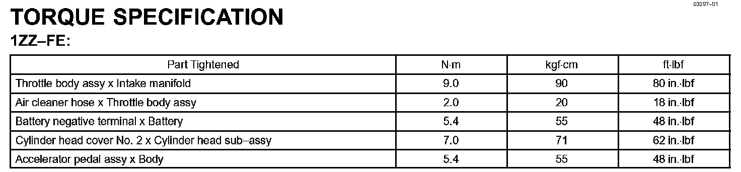 Engine Mechanical - Torque Specification Part 1: