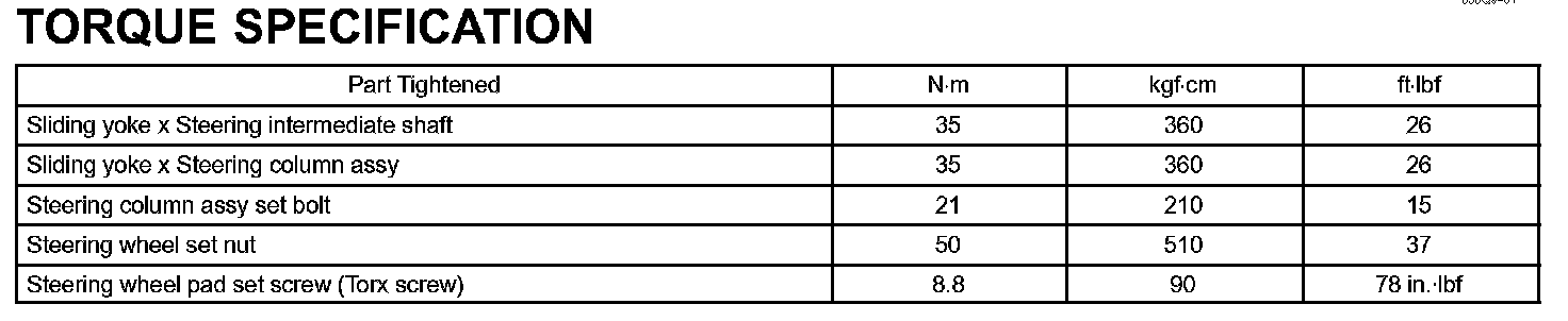 Steering Column - Torque Specification: