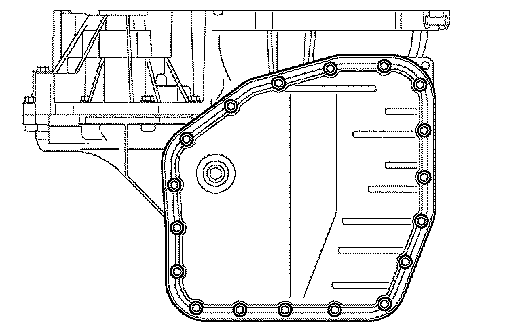 NOTICE: Some fluid will remain in the oil pan. Remove all pan bolts, and carefully remove the oil pan assembly. Discard the gasket.