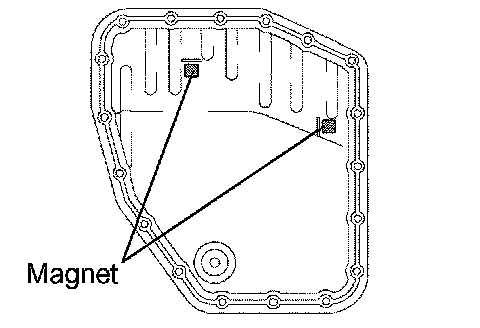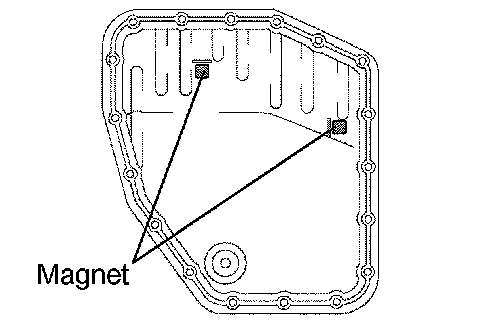 (1) Remove the magnets and use them to collect any steel chips. Look carefully at the chips and particles in the pan and the magnet to anticipate what type of wear you will find in the transaxle.
