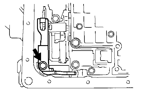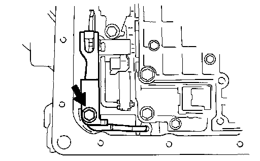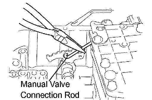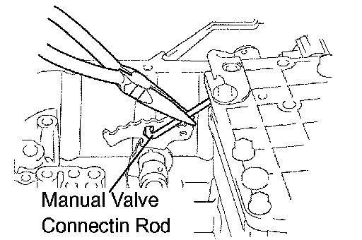d. Using needle-nose pliers, while disconnecting the manual valve connecting rod from the manual valve lever, remove the valve body with the manual valve together.